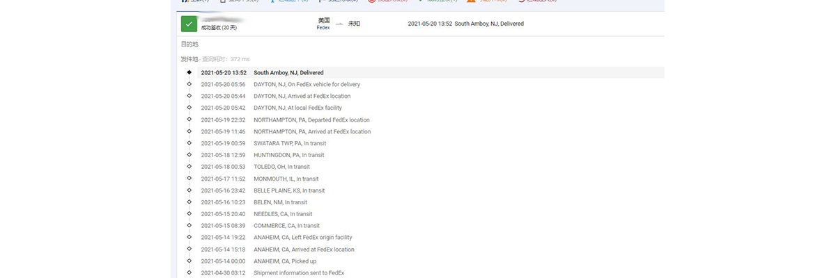 由于陈小姐的货物是在湖北,后通过国内快递方式取件到我们广州仓库,再由我们广州仓库转运出去。